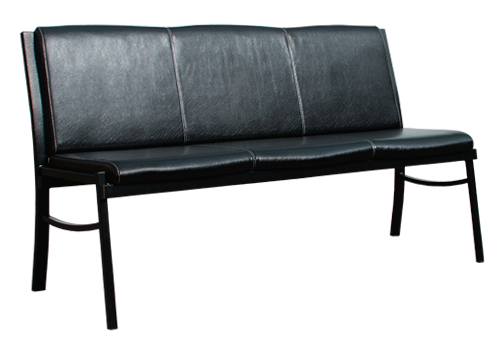 Каркас выполнен из тонкостенной профильной трубы. Окрашен защитно-декоративным полимерно-порошковым покрытием. Каркас имеет две цельносварные боковины,  изготовленные из профиля 40х25х1.5 мм (задняя ножка-спинка), 25х25х1.2 мм (передняя ножка) соединенные двумя перемычками из профиля 25х25х1.2 мм и 20х20х1.2 мм. Боковины соединены между собой двумя перемычками из профиля 40х25х1.5 мм с помощью винтов М6х15 мм и спинка укреплена перемычкой 20х20х1.2 мм. Трубы каркаса заглушены защитно-декоративными пробками ПВХ. Полумягкие сиденье и спинка дивана выполнены из ДСП толщиной 16 мм, обтянуты поролоном толщиной 40 мм и обшиты мебельным кожзаменителем. Обратные стороны полумягких частей обиты нетканым материалом (спанбондом). Сиденье и спинка скрепляются с каркасом саморезами Ø4х16 мм. Допустимая нагрузка 120 кг.