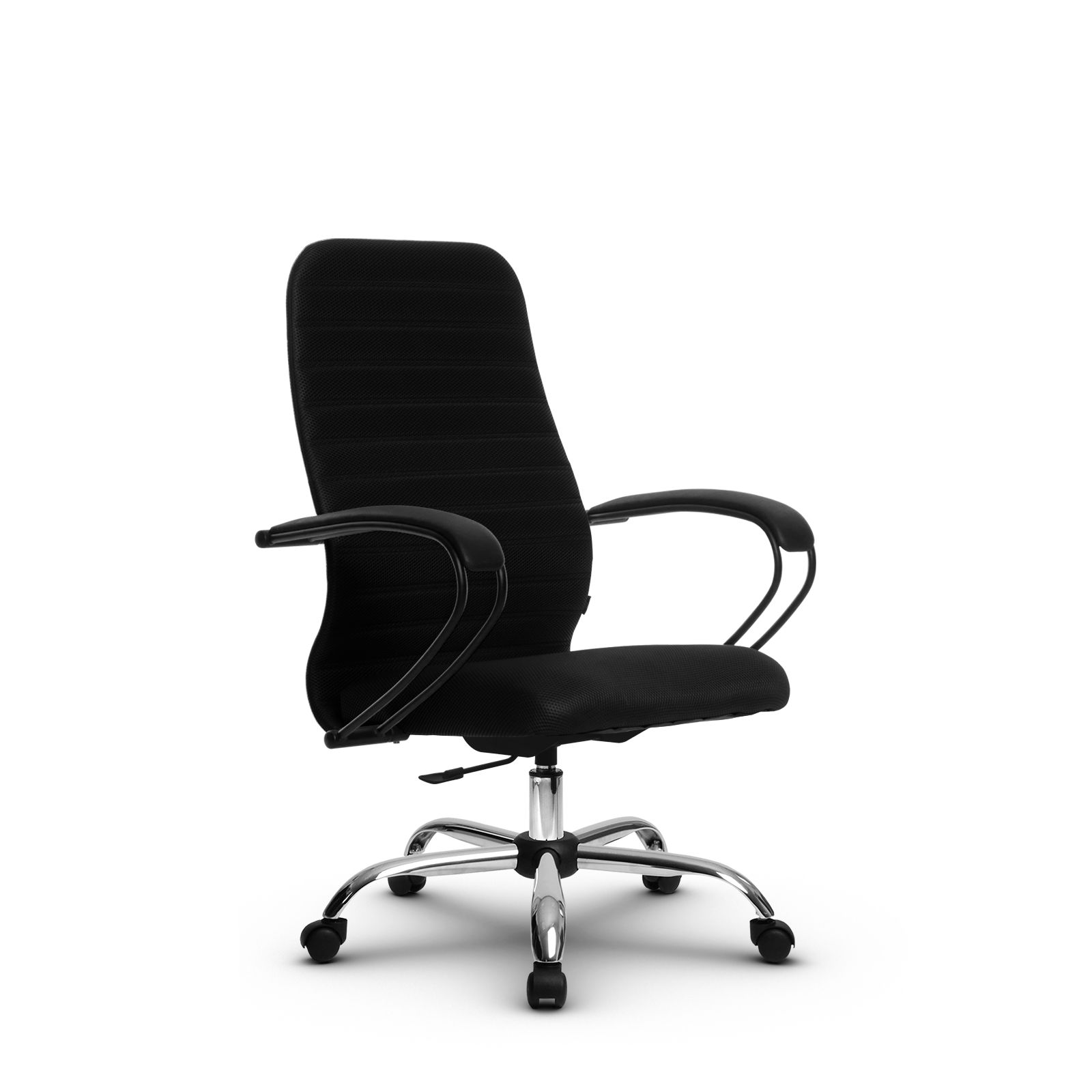 Подлокотники: стальные классические, с полимерным покрытием черного цвета, с мягкими накладками