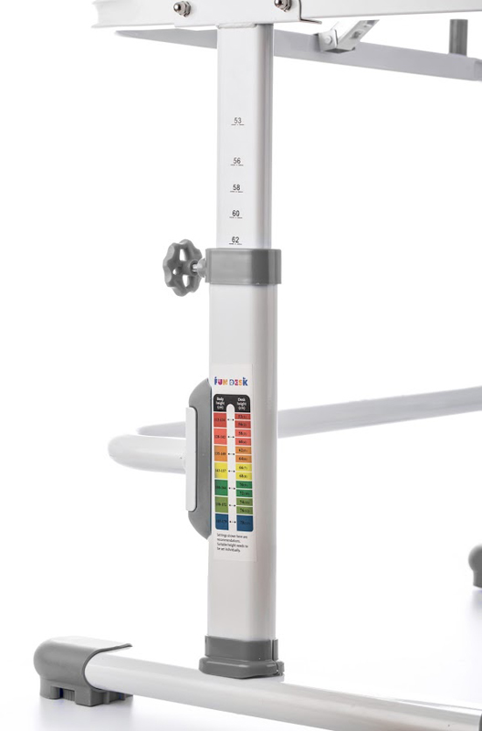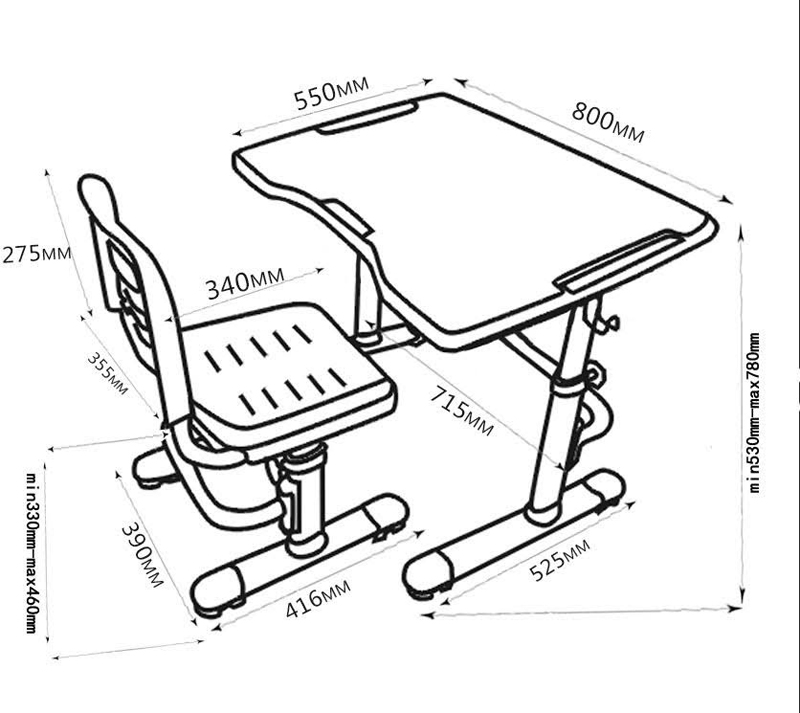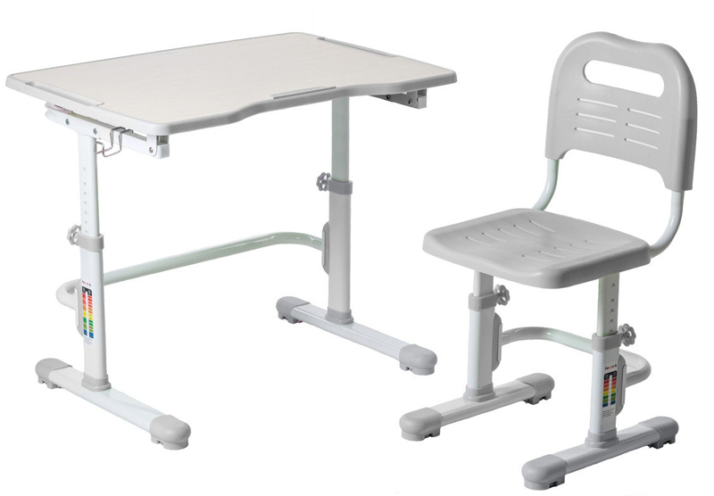 Стол и стул могут быть легко отрегулированы по высоте, что позволяет оптимально адаптировать его под соответствующий рост ребенка. Поверхность учебного стола можно наклонять до 60° для удобного письма, чтения и рисования.
