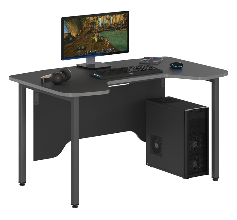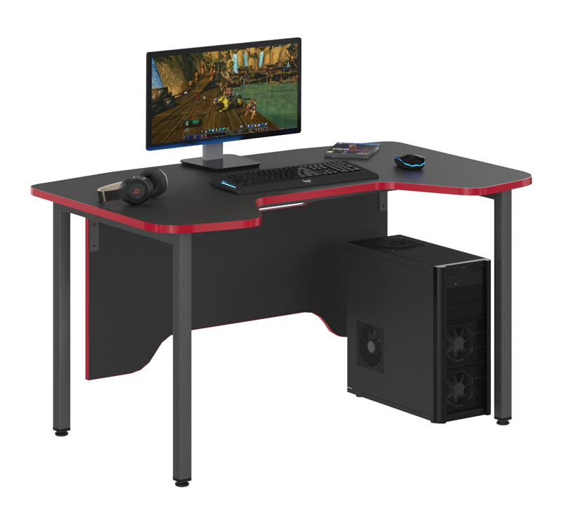 Столешница эргономичная из ЛДСП т. 22 мм, фронтальная панель эргономичная из ЛДСП т.18 мм. Цвет - Антрацит, кромка ПВХ т.2 мм, цвет - Красный.